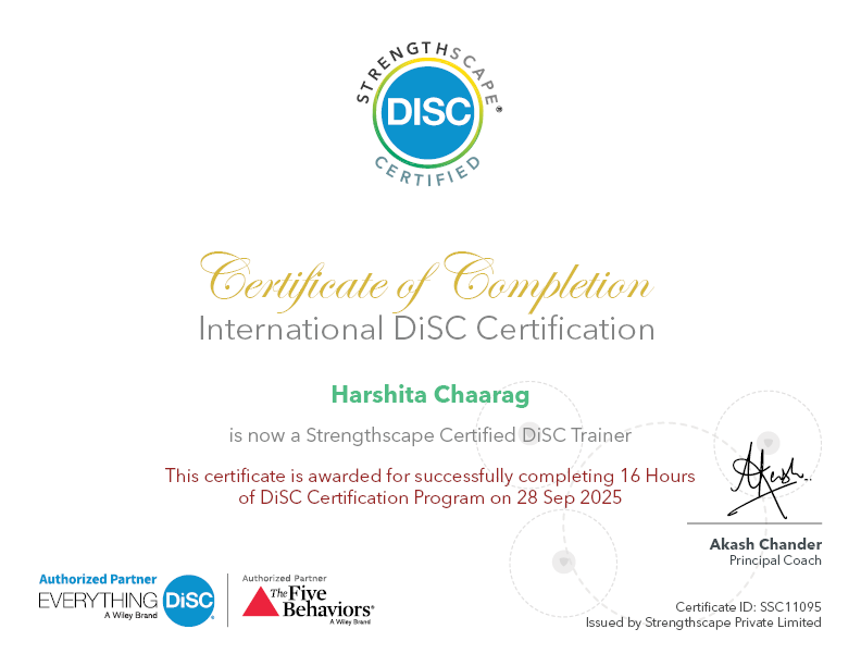 Strengthscape’s DiSC Trainer Certification offers a highly interactive program that examines different personality theories, the DISC model of behavior, adult learning principles and the latest research in neuroscience to gain a thorough understanding of behavioral styles and change. Through this program, consultants, trainers, and coaches can confidently debrief clients on their DiSC assessment results. In this program, participants learn how to use Everything DiSC assessments to design and deliver training and coaching interventions.